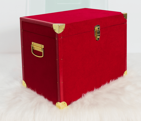 Elevate your gifting experience with this premium rectangular gift box, crafted from a rich, textured fabric in warm burgundy tones. Designed with elegance and durability in mind, it features gleaming gold corner protectors and a secure latch closure, ensuring your gifts are both beautifully presented and well-protected. Perfect for hampers, keepsakes, or special occasion packaging, this box transforms any gift into a statement of style and sophistication.
