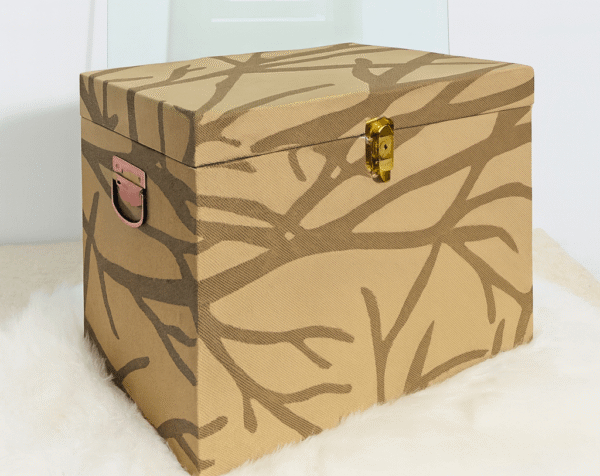 Elevate your gifting experience with this premium rectangular gift box, crafted from a rich, textured fabric in cool patterned carton brownย tones. Designed with elegance and durability in mind, it features gleaming gold corner protectors and a secure latch closure, ensuring your gifts are both beautifully presented and well-protected. Perfect for hampers, keepsakes, or special occasion packaging, this box transforms any gift into a statement of style and sophistication.