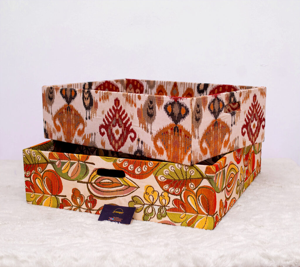 These trays are crafted from strong wood with fine cloth overlays, giving them a balance of rustic elegance and modern chic.